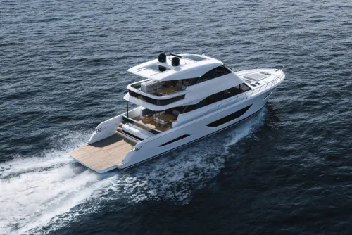Defined by the ultimate in Maritimo style, engineering, power and outstanding efficiency, everything combines to establish the uniquely commanding stature and natural leader of our fleet.