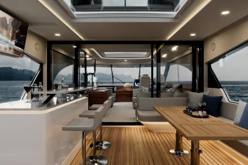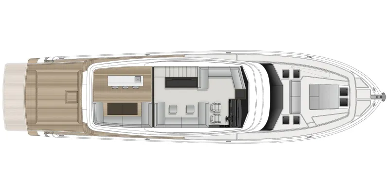 Step aboard, and the first impression the M75 emanates is certainly that of unsurpassed amounts of deck space. The M75 adventure deck creates an incredibly versatile hub for lounging, cooking, adventuring or storage, with plenty of room to spare.