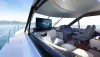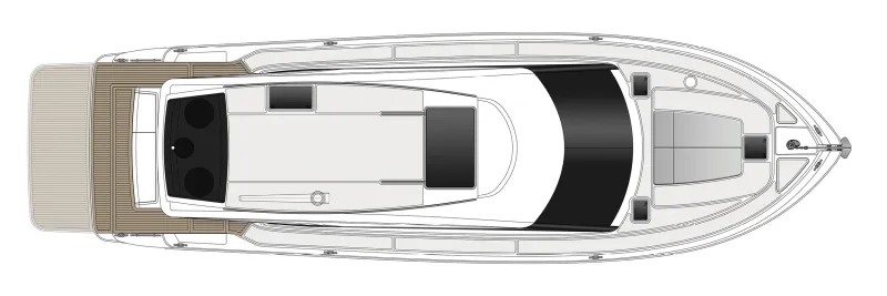 The amount of floor space offered in the upper cockpit alfresco deck leads the market in the mid 50 foot category, with standard rear U-shape lounging and dining table and further option of opposing lounging flanking each side of the area.