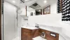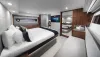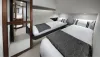 Below deck free-flowing spaces utilize the hull’s volume, maximising height and minimising the number of steps. Three spacious staterooms and two ensuites are on offer, with full-beam king master stateroom, offset queen forward stateroom, and twin single starboard guestroom.