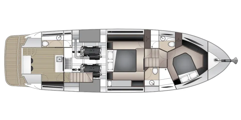 In addition to the trademark X series aft accommodation the new X50 has two large staterooms and ensuites in the forward accommodations.